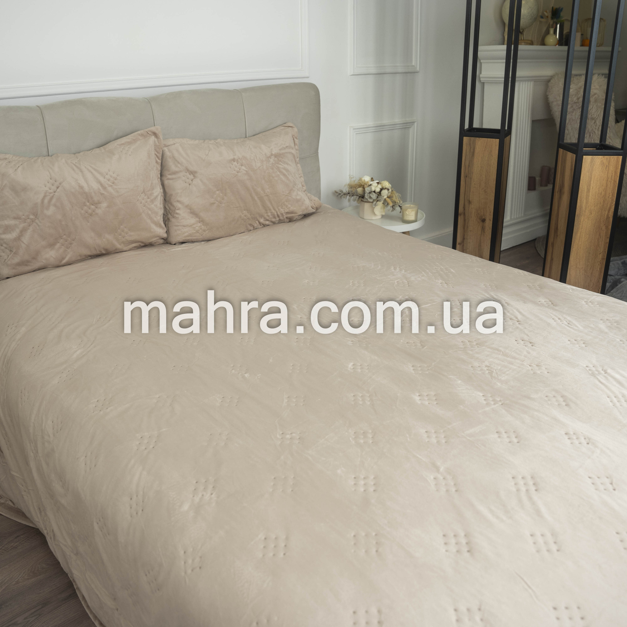 Покривало слонова кістка з наволочками