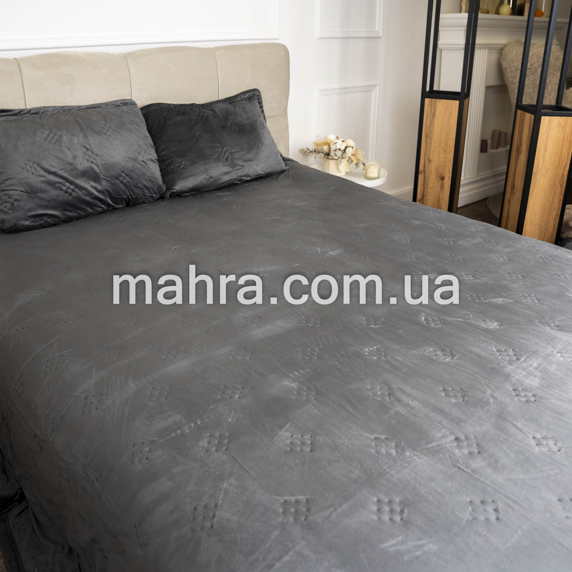Покривало темно-сіре з наволочками