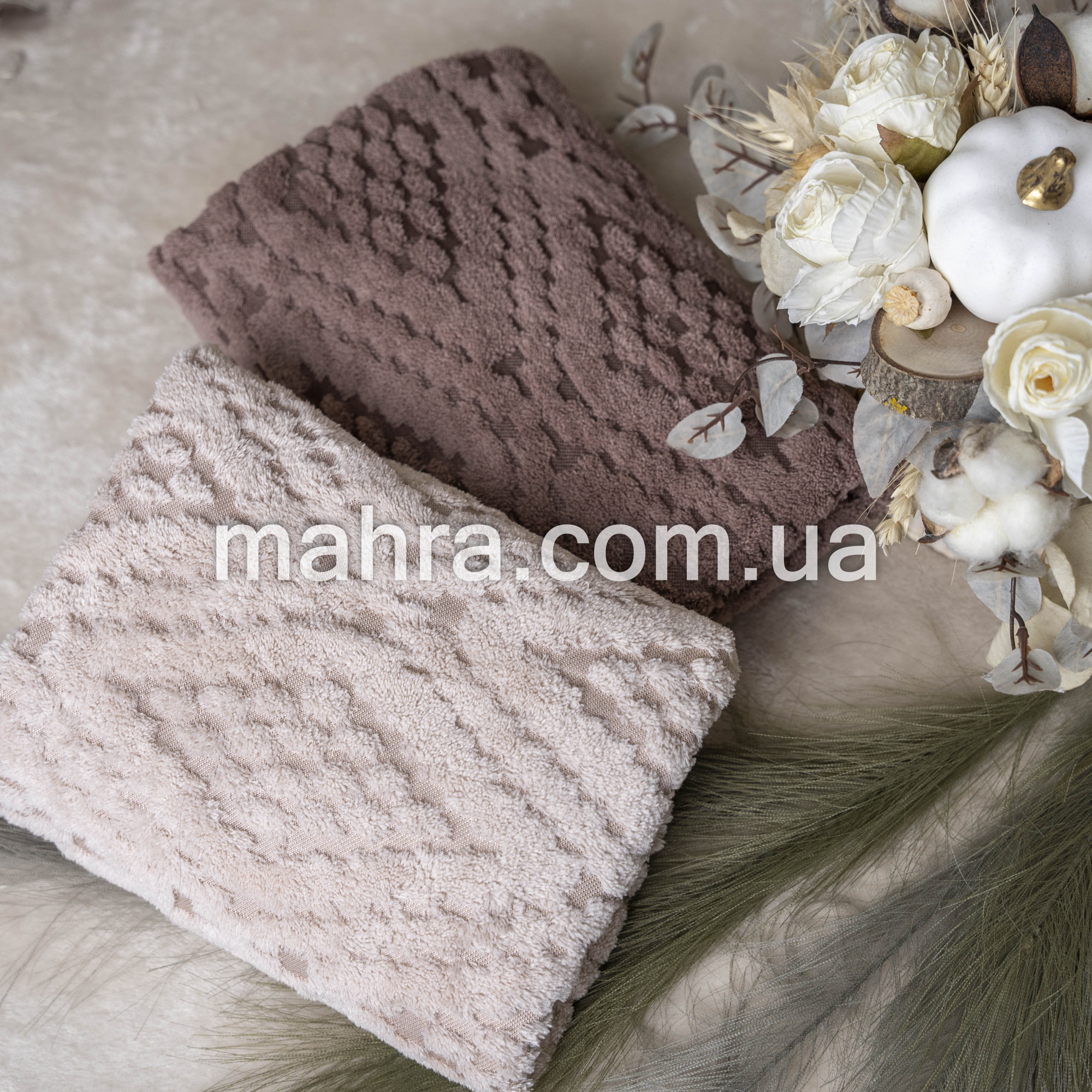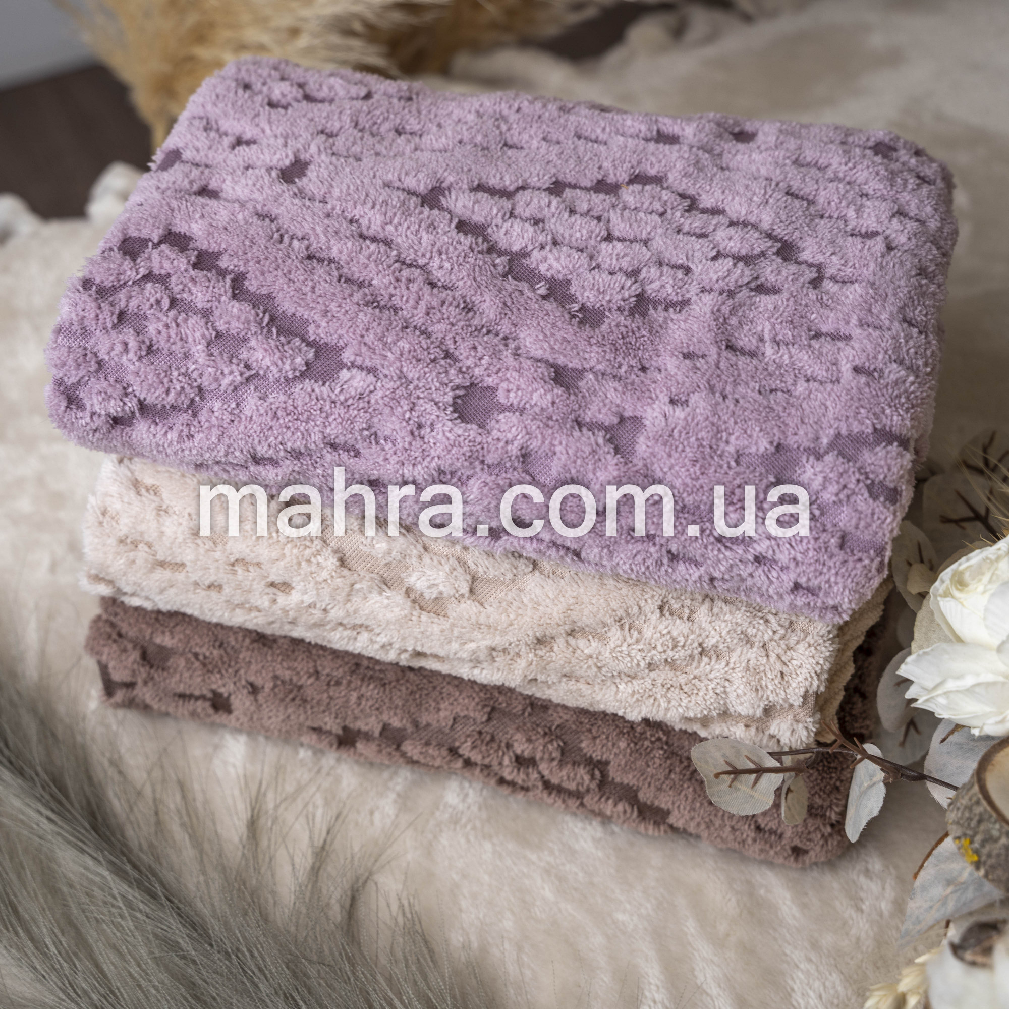 Набір м’яких і практичних рушників із декоративним тисненням. Виготовлені з мікрофібри, вони відмінно вбирають вологу, швидко сохнуть та довго зберігають форму і колір навіть після багаторазових прань.